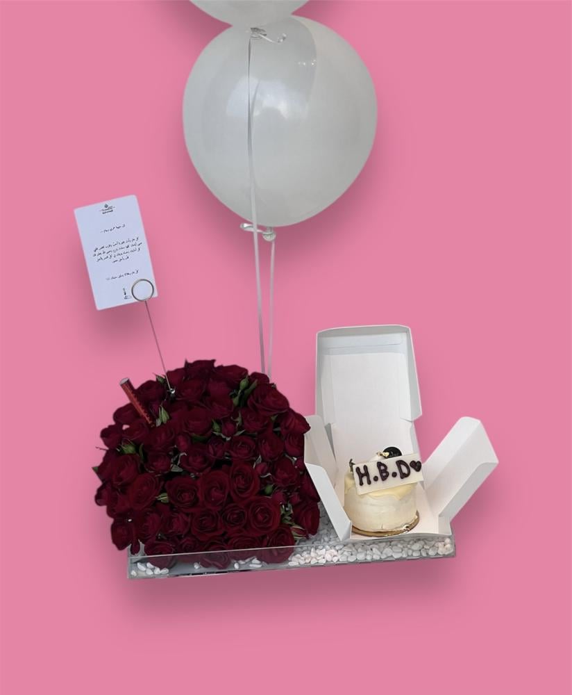 بكج أنيق بتنسيق مرتب ومميز قاعده من الاكرليك اضافه كيك لذيذ كرت طباعه 2 بالون 🎈
