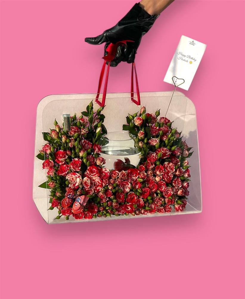 سله اكرليك بتنسيق مميز ورد ببي روز دبل كلر إضافه كرت طباعه