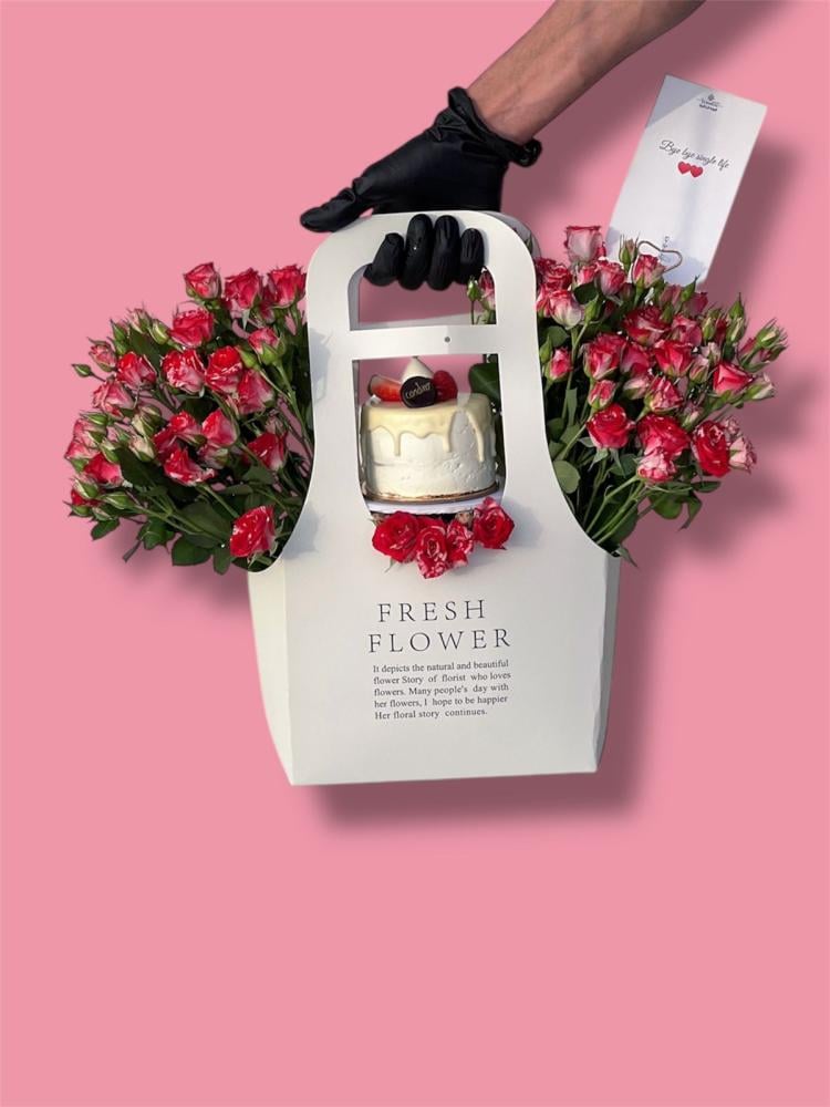 بكج أنيق ورد ببي روز دبل كلر بتنسيق فاخر اضافه كيكه وايت شكلت الذيذ شخصين اضافه كرت طباعه