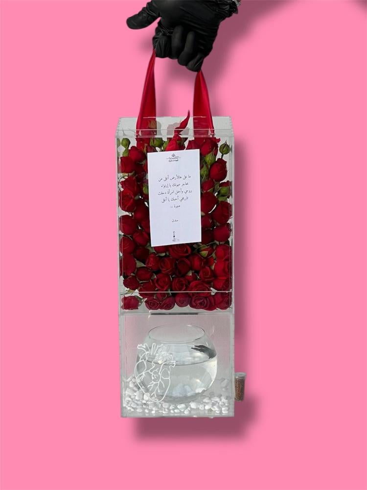 بوكس اكرليك بشكل احترافي ورد ببي روز احمر أضافه سمكه فايتر كرت طباعه